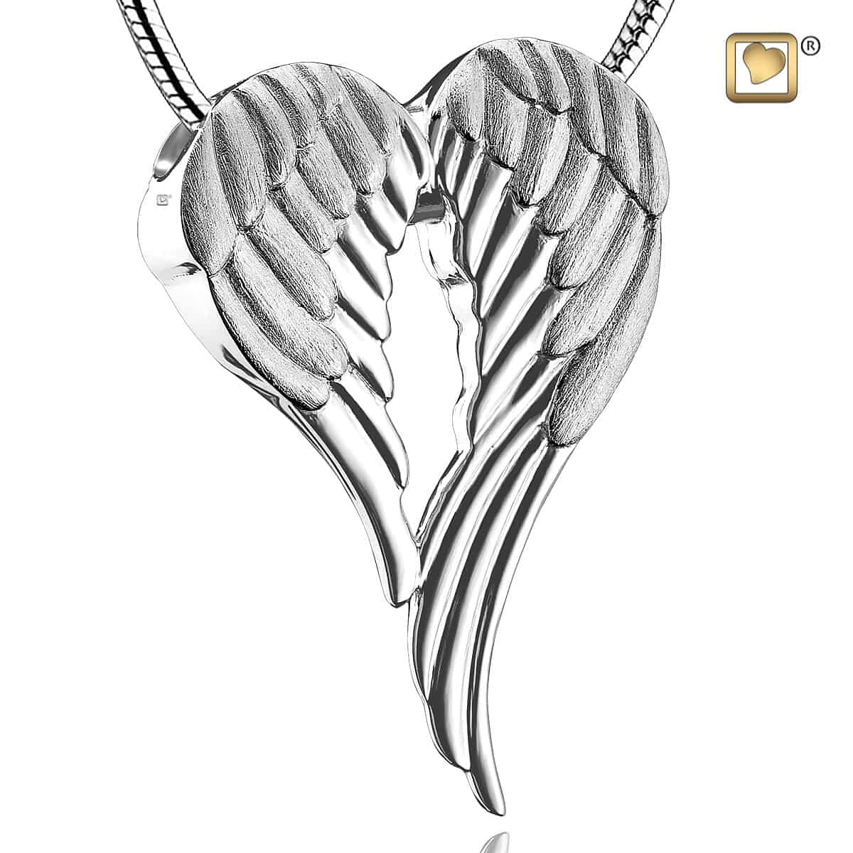 The Angel Wings Silver Pendant is a reminder of a loved one. The wings are symbolic of angels and allow our loved ones to fly through our memories. A very small amount of cremains can be placed into this pendant.