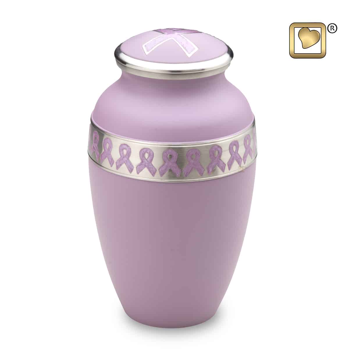 The Awareness Pink Large Urn is a powerful memorial for someone that was impacted by breast cancer. This urn can hold the cremains of most adults. The sturdy brass construction ensures that it will stand the test of time as well.