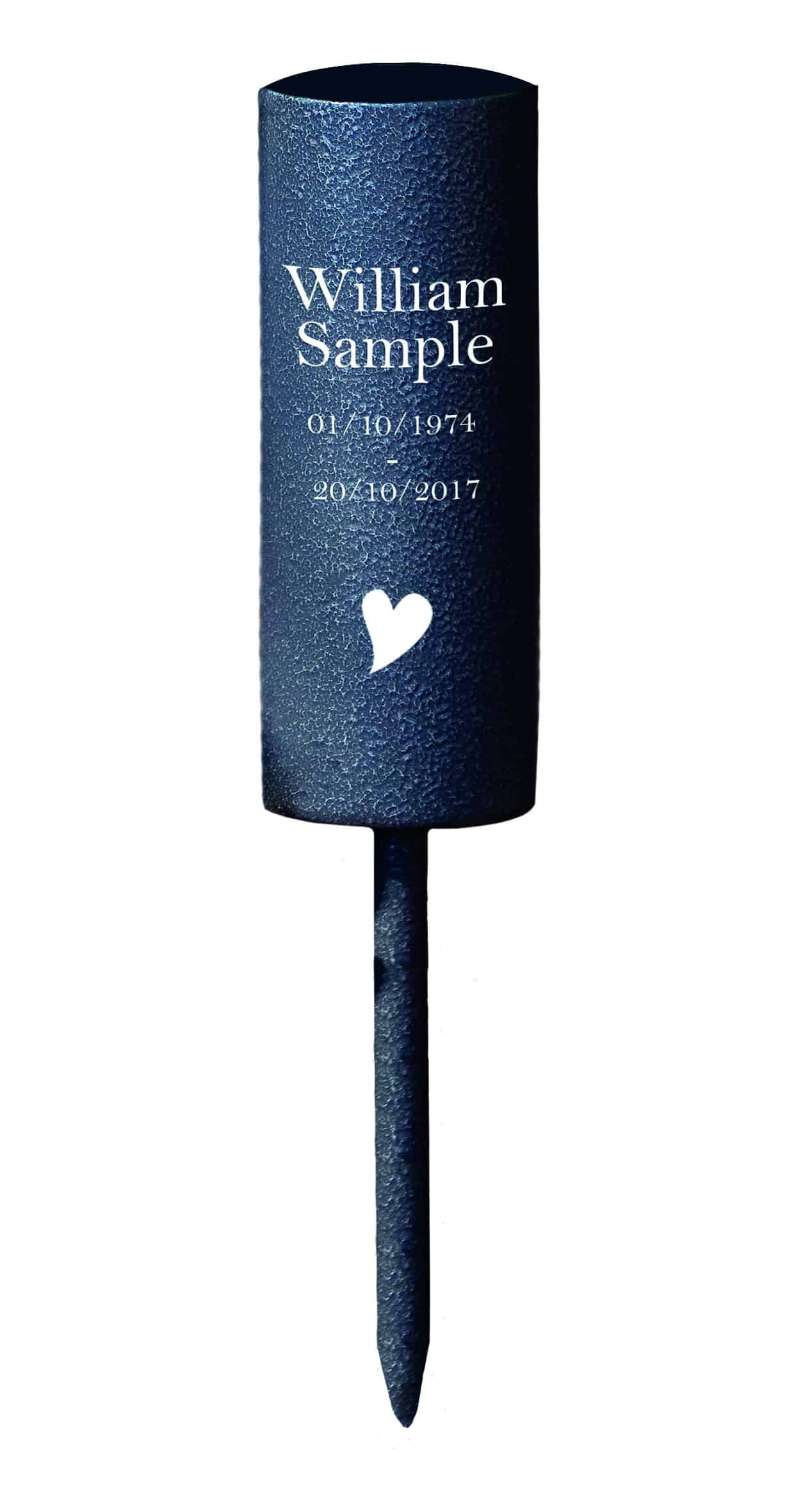 This tall flower pot is 16cm tall, with a 14cm spike to be placed into the ground. These items can be engraved and the colour is textured graphite.