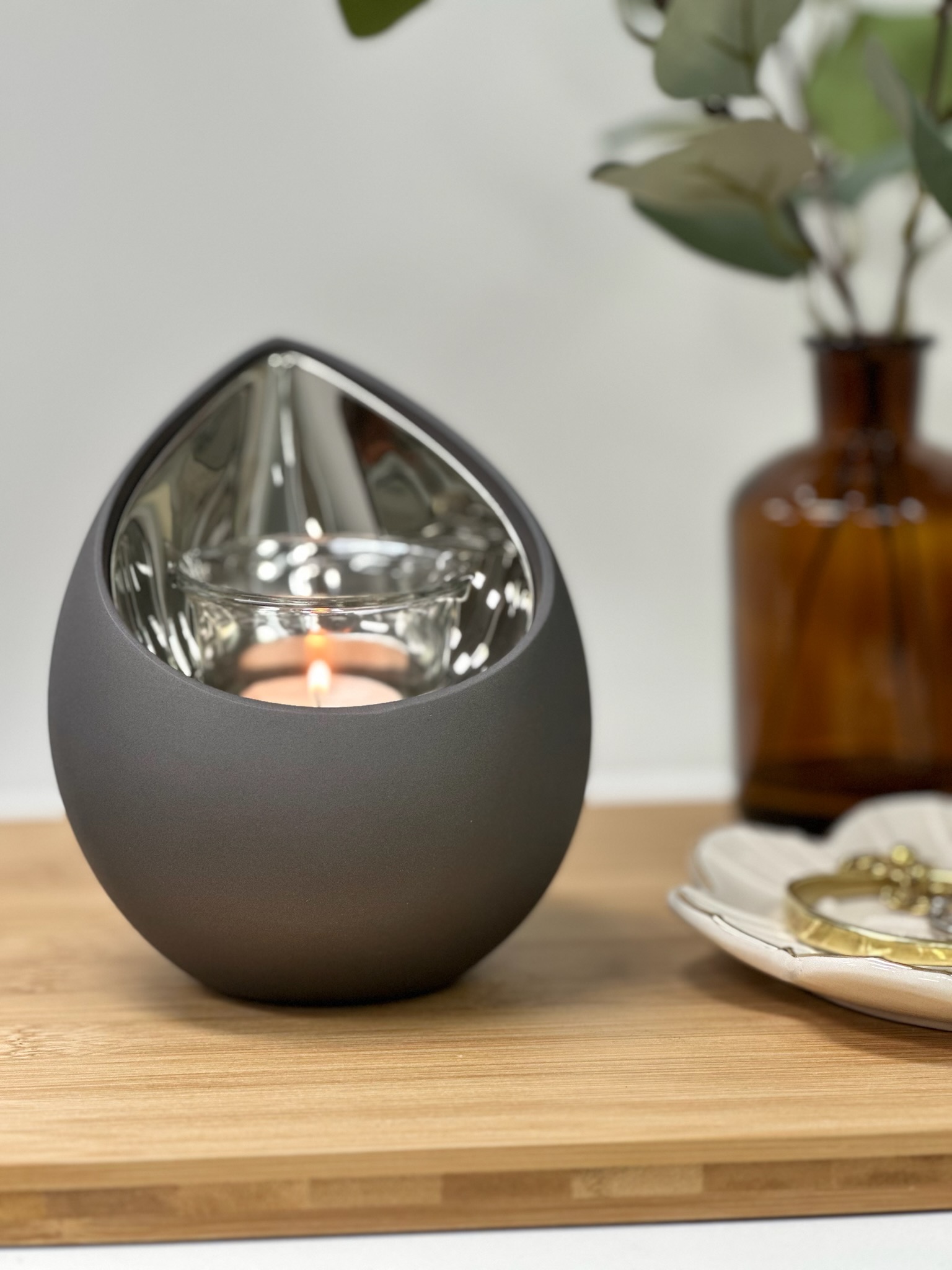 The French Grey Drop Tealight is a beautiful sculptured tear shaped urn. No one would think it contains cremains, a discreet way to have your loved one displayed.