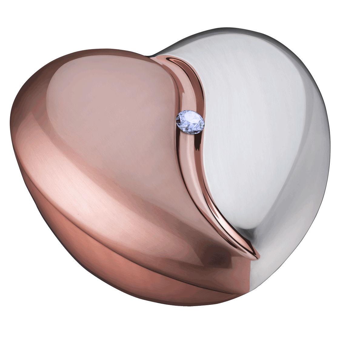 The Heartfelt Brush Rose Gold Large Urn is a beautiful, sculptured heart made of brass with an inlaid crystal.