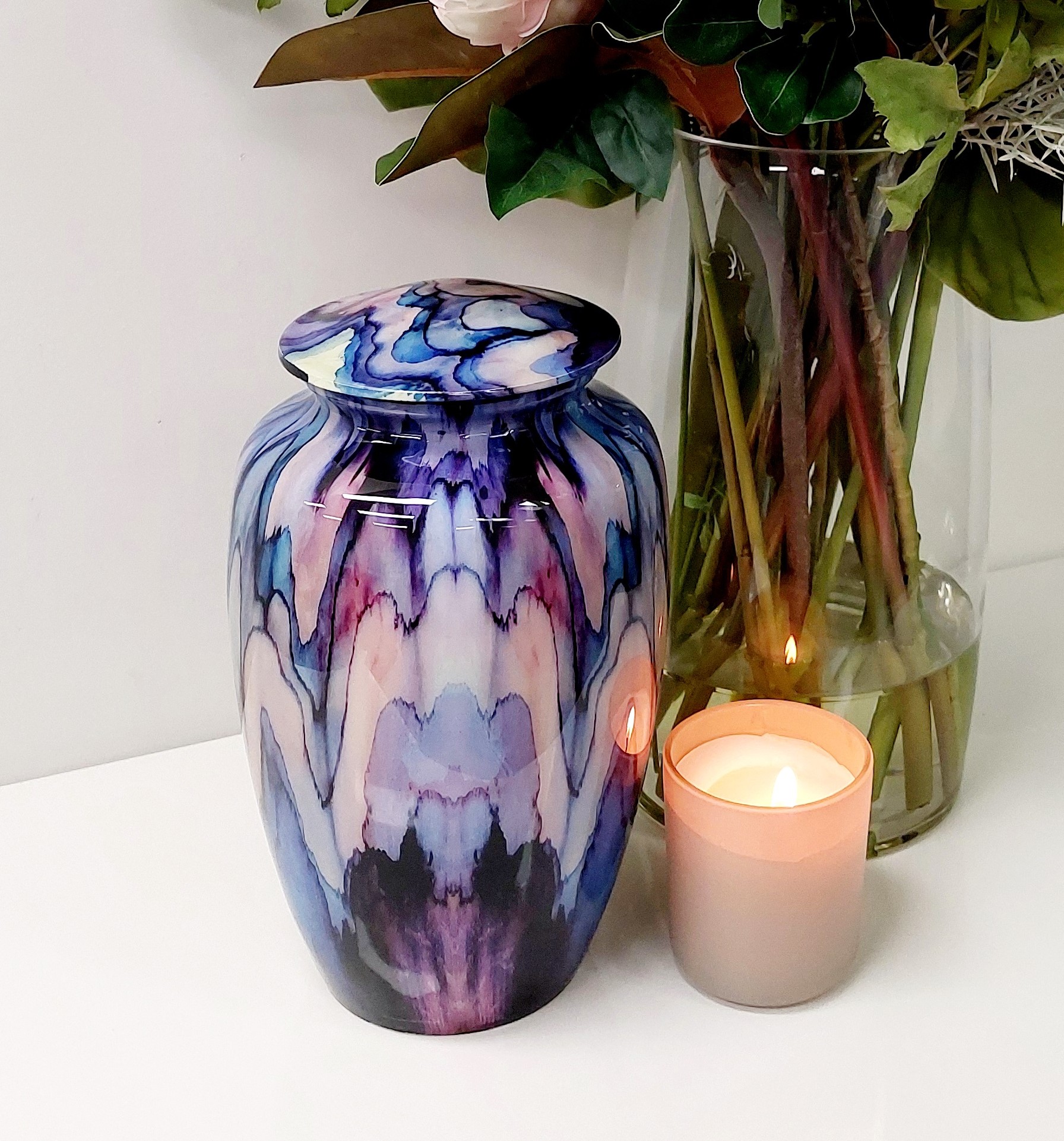 The Modern Blue Abstract Urn is created with fine attention to detail yet unique in design, as each urn is handmade. Due to this some variations to colour and pattern can occur.