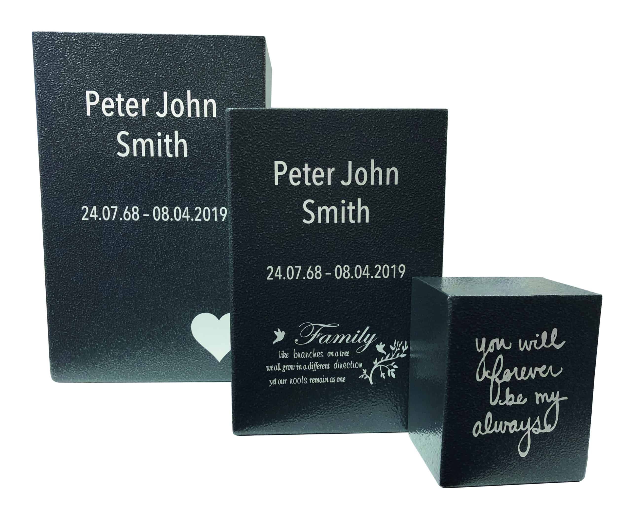 Made to last in the tough outdoors conditions of Australia, this keepsake urn is simple in design. This rectangular urn is coloured as textured graphite.