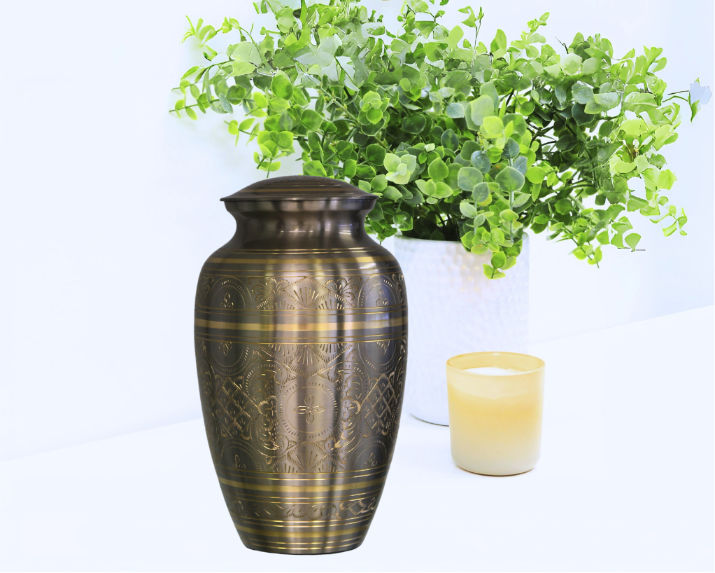 Classic in shape and made from brass, the urn is 27cm tall and can contain most adult cremains.