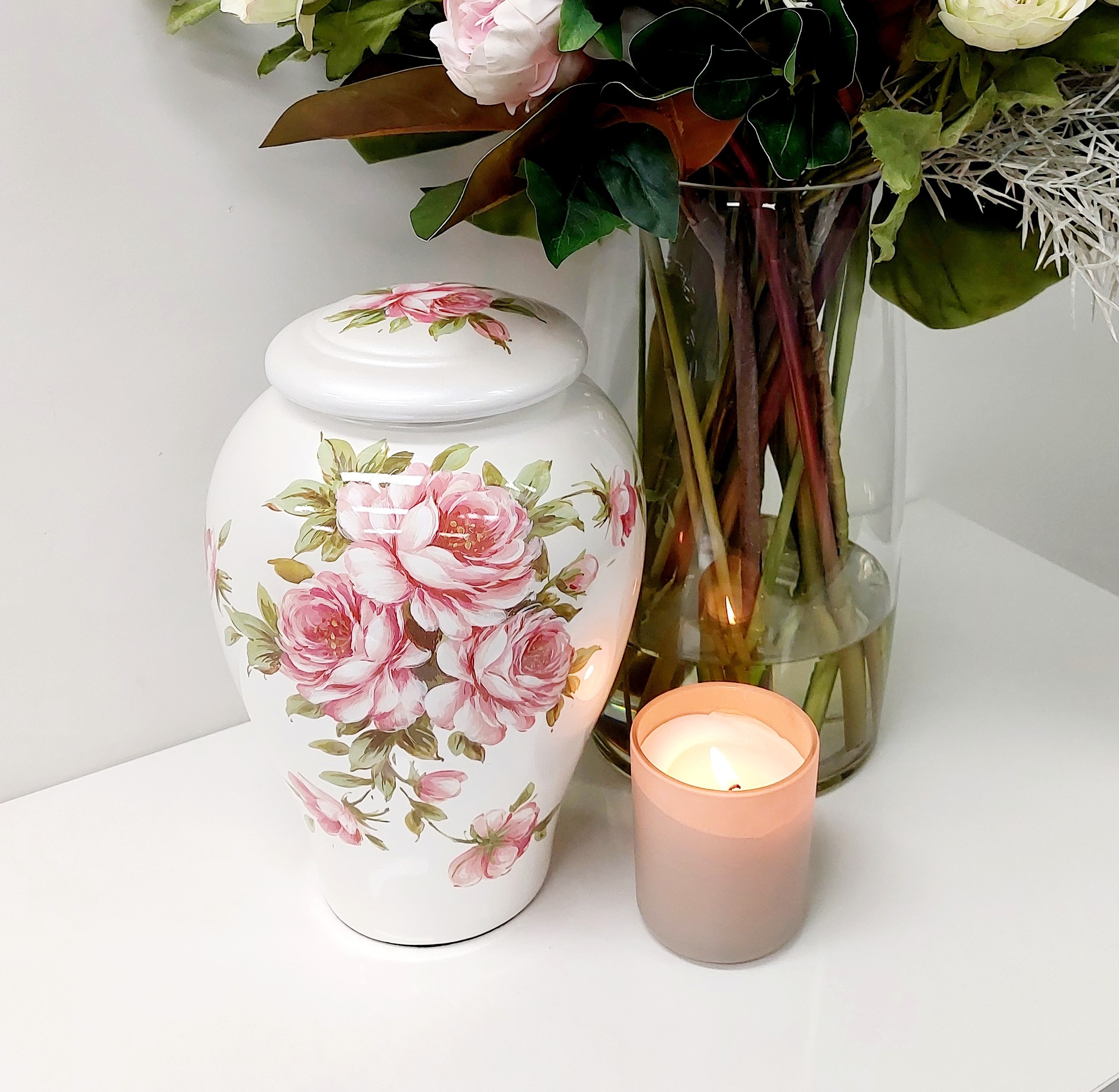 The Rose Bouquet is a beautiful ceramic urn with a classic style rose motive.