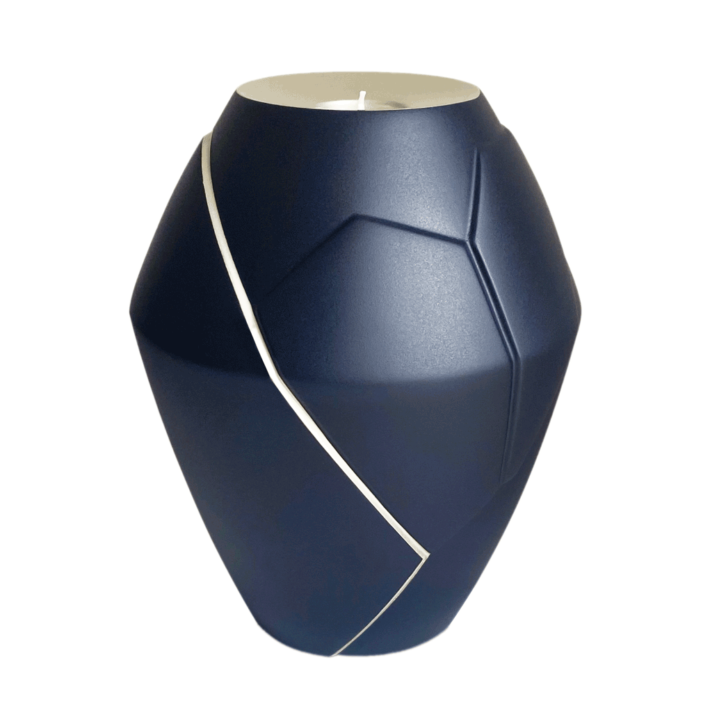 The Signature Series Navy Urn has light gold accents. This full size urn has a small capsule inside the bottom of the urn for either a keepsake item or a proximity beacon.
